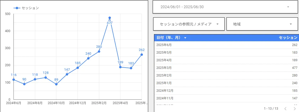 この画像は、2024年6月~2025年6月までの1年間の数字となっています。